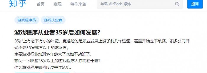 在知乎,就有一位游戏从业者遭遇了“大龄困境”。面对越发年轻化的行业环境,他对即将到来的中年危机感到恐慌,企图寻找出路。而该话题也有近3万人浏览,多位同行参与讨论并纷纷给出了自己的意见。