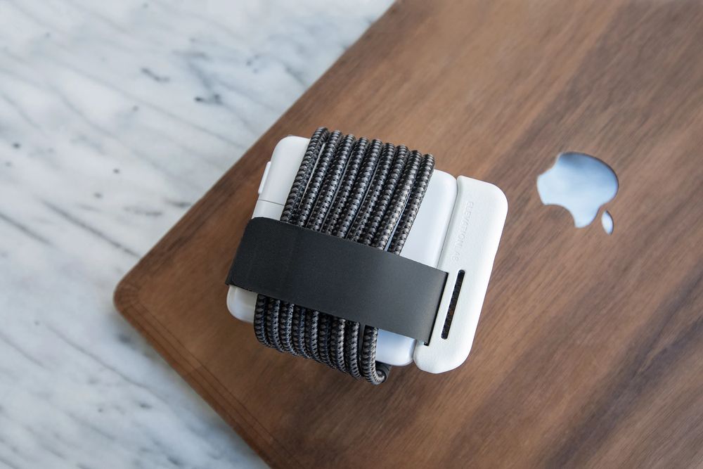 ElevationLab表示,ElevationHub的设计是为了 "完美满足 "USB-C MacBook充电器的几何尺寸,将其变成一个单一的单元。它可以与苹果提供的30W、61W、87W和96W电源适配器选项配合使用,不过直流充电仅限于61W。