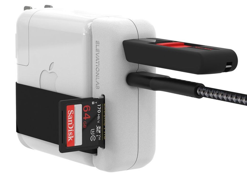 知名配件厂商 ElevationLab 今天推出了一款非常独特的产品--ElevationHub。它将线缆管理、SD卡读卡器、USB-A 3.0 端口整合到了一起。它可以连接到 MacBook Pro/Air 的电源适配器上,在不使用的时候能够将线缆使用魔术贴进行整理。