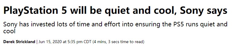 TweakTown称从索尼高管那里听到了更多关于PS5散热凉爽又静音的消息。在最近接受英国《卫报》的采访时,索尼欧洲高管Simon Rutter表示,为了使PS5具有强大的散热降温功能,“索尼付出了巨大的努力”。