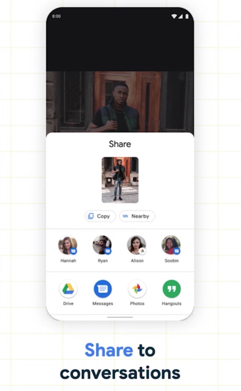今天泄露的名为“对话通知:新功能和最佳实践”视频预览了所有即将推出的与Android 11相关功能,以及开发人员如何集成这些功能。一张幻灯片预览了面向用户的更改,屏幕截图显示了四个联系人出现在共享表中,作为直接发送到对话的一部分。这些是渲染图,但应反映出Android 11的最终设计。