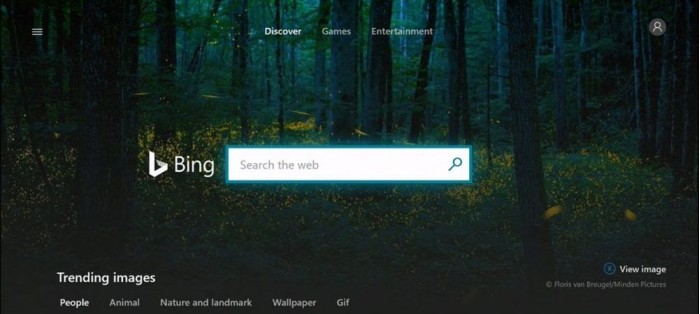 率先面向美国地区的 Xbox One 游戏主机,微软引入了全新的 Bing 搜索体验。目前处于预览状态,Bing 应用提供快速访问网页搜索、娱乐和游戏新闻等功能。这款应用还附带了大多数Bing用户似乎都喜欢的精美日常壁纸。