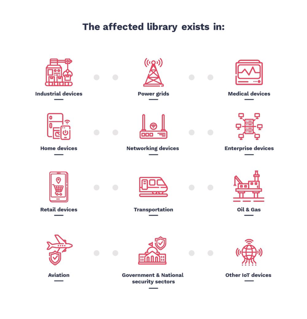 预估有“数亿”台设备受到影响,涵盖智能家居设备、电网设备、医疗系统、工业装备、运输系统、打印机、路由器、移动/卫星通信设备、数据中心设备、商用飞机设备、各种企业解决方案等产品。