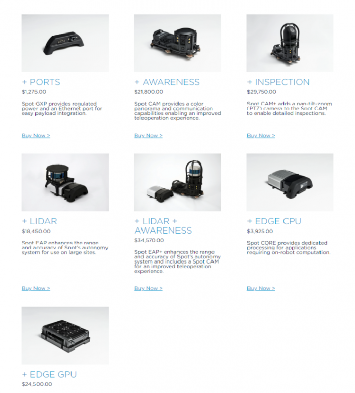 在波士顿动力官网上,附加组件的价格也都一一展示了出来: