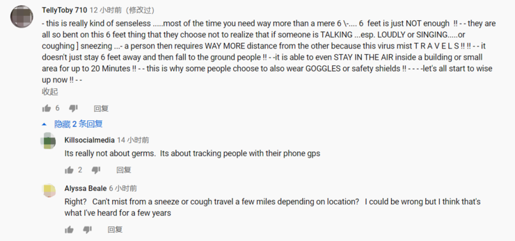 这毫无意义!打喷嚏、咳嗽传播的病毒会在空气中流动传播,甚至停留20min,6英尺的安全距离是远远不够。这就是为什么人们选择带护目镜和防护口罩,请明智一些吧。