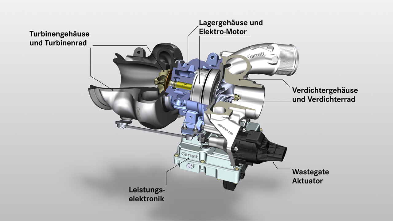 梅赛德斯-AMG的设计使发动机低速时的扭矩更高,以提高敏捷性,优化静止时的加速能力。电动涡轮增压器可以始终保持增压压力,即使在驾驶员离开油门或踩刹车时也是如此。涡轮增压器的转速可以达到170000转/分,从而实现高速气流。电气部分通过48伏车载电气系统运行。电动机和动力电子装置与发动机的冷却回路相连,使其始终处于最佳温度范围内。梅赛德斯-AMG目前没有说明哪款车将率先使用新的电动废气涡轮增压器。