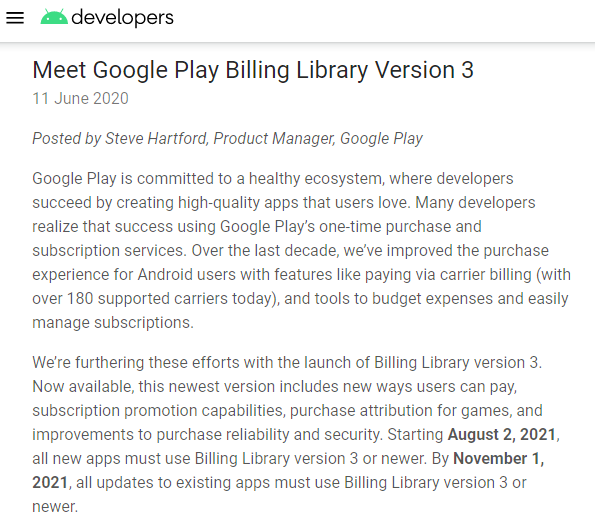 谷歌在博客文章中提到:Billing Library v3 版本释放了在 App 外部(比如 Play 商店中)发现和购买商品的能力,比如无摩擦的订阅促销代码的兑换体验。