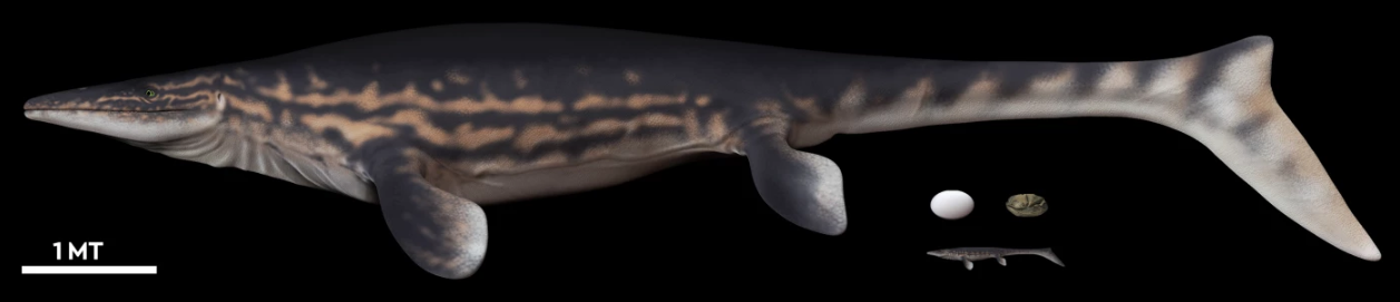 研究人员认为,这最有可能属于一种已经灭绝的海洋爬行动物-沧龙。研究人员在比较了259种活体爬行动物的相对身体和卵的大小后得出了这一结论。根据这枚蛋的大小,研究人员计算出,产下蛋的爬行动物的体长一定超过23英尺(7米)--不包括尾巴。