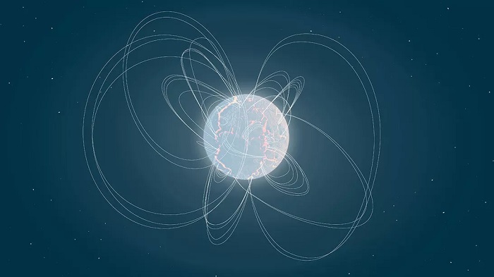 作为具有极强磁场的稀有中子星(巨大恒星的坍塌核),其在坍塌时将大量物质挤压到了一个极小的空间中,从而引发了许多奇怪的物理现象。