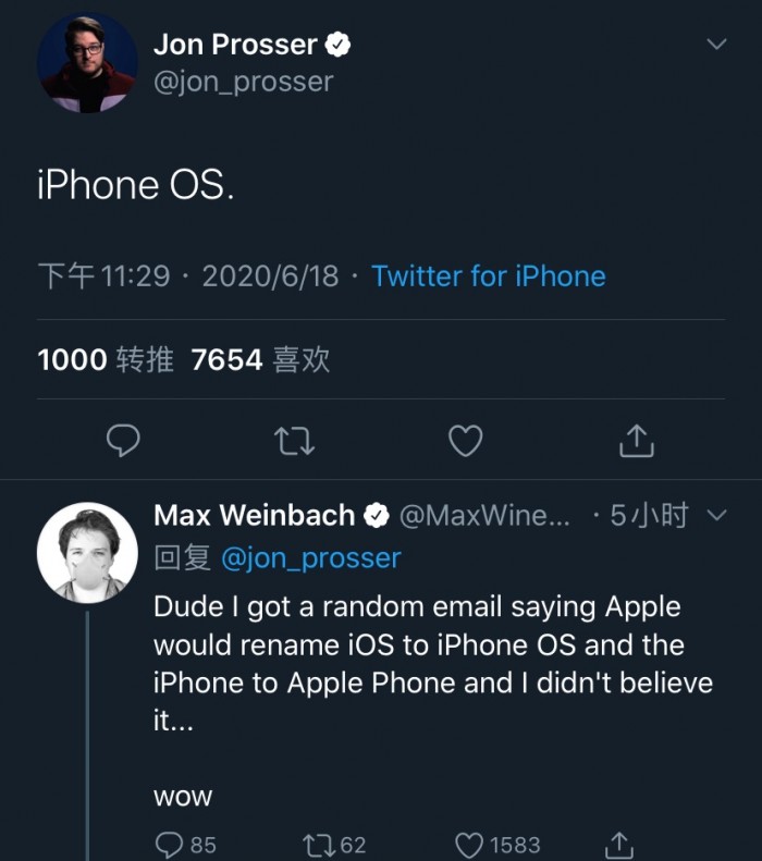 不过最新消息称,iOS将迎来巨大变化,其将改名为iPhone OS,就像iPad OS那样。其实初代iPhone发布时,当时的系统就叫iPhone OS。