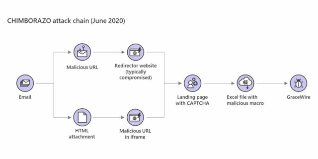 此前微软有在网络钓鱼邮件活动中发现 Chimborazo 采取的类似操作(在附件中分发恶意 Excel 文件),然后通过嵌入式的 Web 链接进行传播。