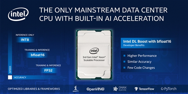BF16标准还已经获得Google、微软、ARM及其他AI公司的广泛采纳,Intel至强则是x86阵营中第一家、也是唯一一家支持它的CPU处理器。