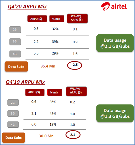 然而,非洲和其他发展中地区在促进4G业务方面也取得了不错的进展,例如,非洲Airtel 的4G网络扩容和“大套餐包”推动了用户向4G迁移,在数据平均使用量和数据ARPU值方面都得到大幅提升,过去的一年有3/4的收入增长来自于数据,2020年3月,4G在数据用户中占比从去年的18%上升到29%,4G收入在Airtel数据收入占比中超过60%。