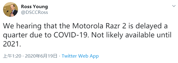 早前有爆料称,第二代 Moto Razr 会在今年某个时候与大家见面。然而据显示屏供应链顾问公司 CEO Ross Young 所述,该机或至少推迟一个季度才能上市,甚至从 2020 年拖到 2021 年。