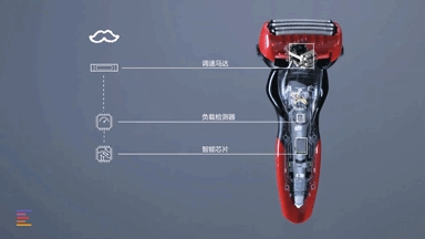 在这个名词的背后主要有三个关键因素:负载检测器、调速马达和芯片。智能剃须其实并不复杂,它的工作过程就是,当剃须刀触碰到疏密不同的胡须时,电机的输出功率是有所变化的,而负载检测器一直在记录电机的参数变化,并将其传递到拥有计算能力的芯片上,芯片根据不同的电信号来判断胡须疏密程度,并通过控制电路去提高或降低马达的转速,从而实现智能剃须。