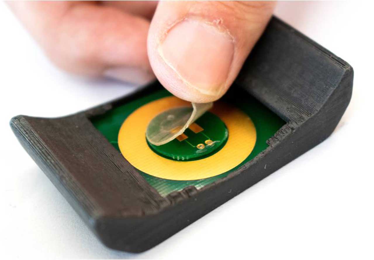 工程师们开发的解决方案可以将可穿戴设备升级为健康监测平台,能够测量分子级信息,让人们更深入地了解身体实时发生的情况。胶膜接触皮肤的一面收集并分析汗滴的化学成分。面向手表的那一面将化学信号转化为电信号,并在智能手表上进行读取、处理和显示。