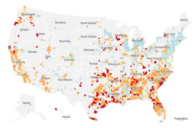 目前,亚利桑那州、佛罗里达州、德克萨斯州和阿拉巴马州受到的打击最大,但路易斯安那州、北卡罗来纳州、佐治亚州和加利福尼亚州的新病例上升也令人担忧。至于那些保持稳定的州,既没有大幅上升,也没有明显的下降趋势,俄亥俄州、印第安纳州、田纳西州、华盛顿州、密西西比州、密苏里州、肯塔基州和南达科他州都榜上有名。