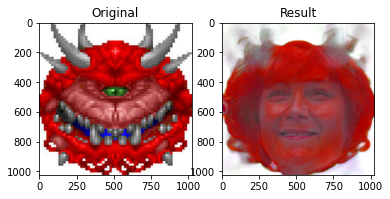 你甚至可以故意上传非人类面部的像素图,软件也一样会努力把图片逆推成人脸。比如《毁灭战士》里独眼怪的图片,也可以被强行逆推成人脸。