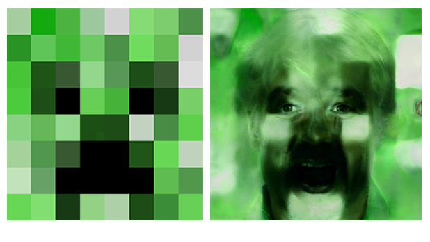 最近人工智能领域有了一个新的小软件,喂给它一个低像素图片,它就能通过此前的学习,逆推出一个去码高清图片。虽然听上去有点恐怖,让人担心自己的隐私会被暴露,但事实上这个担心是比较多余的。真正令人感到恐怖的,其实是把像素游戏角色喂给这个AI以后生成的结果。
