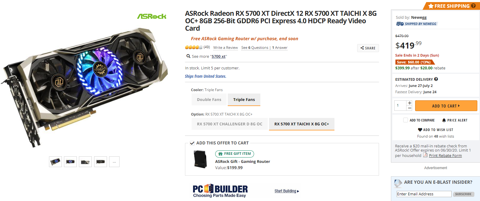 不过RX 5700 XT显卡的价格倒是很坚挺,特别是国外市场上,日前华擎的非公版RX 5700 XT太极显卡才有所松动,419.99美元优惠20美元之后只要399.99美元,首次跌入400美元以内,相比当初的479.99美元降了80美元。