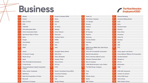 据了解,“2020年中国学生心中的最具吸引力雇主Top20”调研基于来自中国108所重点高校的53062名学生的回答,共收到155244次评估。该排名是对雇主在招聘市场吸引力的年度评估。