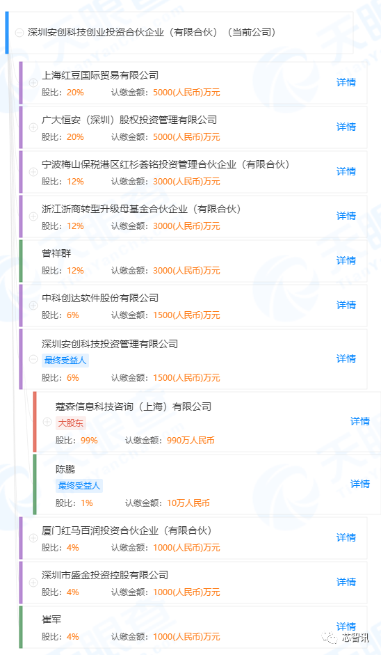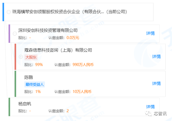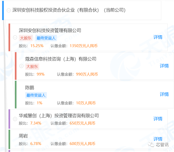 这家成立于2018年3月20日的公司,前面也有介绍,蔻森信息控股的安创科技也是其股东之一。而这家公司则持有ARM中国0.47%股权。