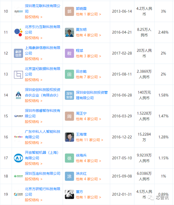 这家公司前面介绍过了,蔻森信息主要通过其成为ARM中国公司的间接股东。如果从该公司第一级的股权结构来看,该公司有20位股东,寇森信息只占其中一席,但是如果展开来看,寇森信息实际控制了其中的三席。