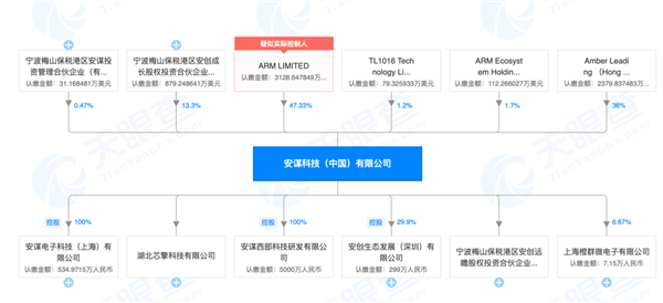 另外,持有ARM中国0.47%股权的宁波梅山保税港区安谋投资管理合伙企业(有限合伙),蔻森信息控股的深圳安创科技投资管理有限公司也是其股东之一。