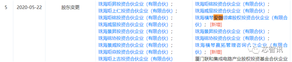珠海横琴安创赢芯管理咨询合伙企业(有限合伙):2020年4月30日成立