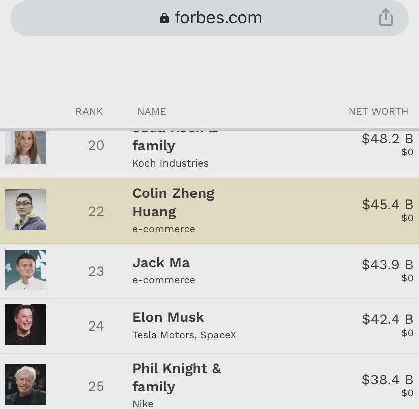 马化腾与马云的首富之争仍在持续,半路却杀出了一匹黑马。据福布斯实时富豪排行榜显示,拼多多创始人黄峥身家已达454亿美金(约合人民币3210亿),超越马云439亿美元(3104亿人民币)成为中国第二大富豪。