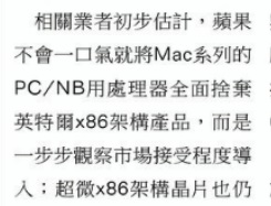 消息中还提到,随着ARM版桌面处理器的发展,接下来苹果真正的目的是,彻底放弃X86,从而摆脱Intel的束缚。