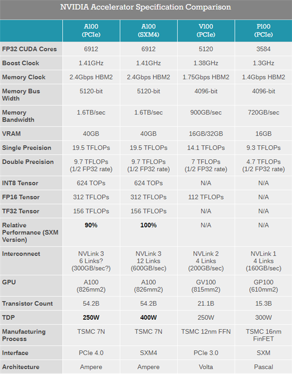 显存依然搭配40GB HBM2,512-bit位宽,2.4GHz频率,1.6TB/s带宽。