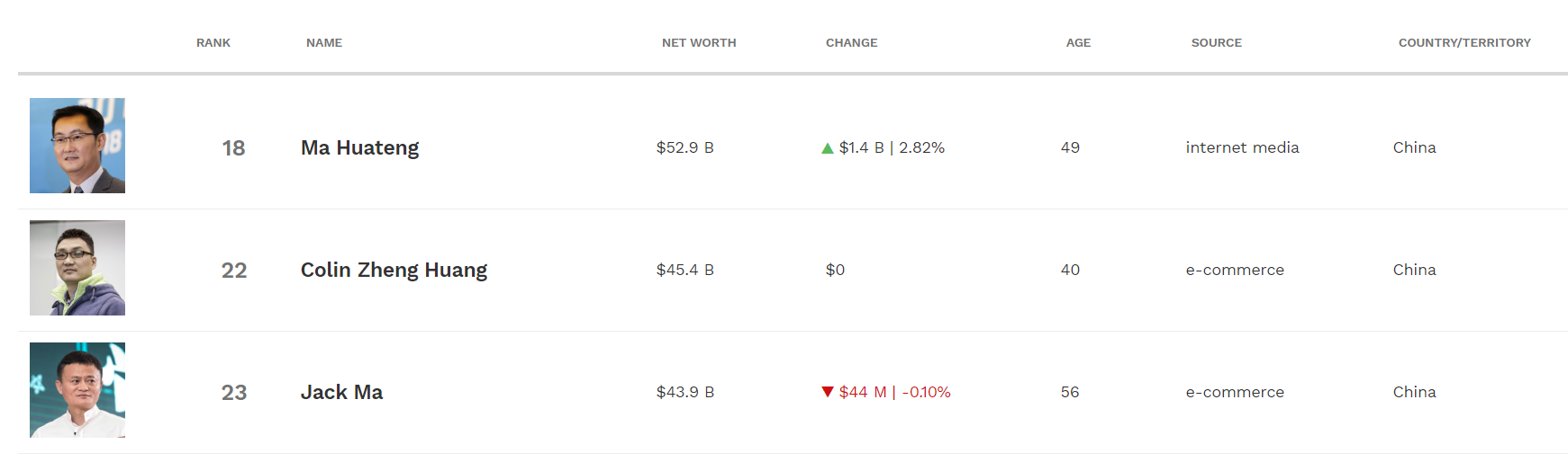 6月22日,根据福布斯实时亿万富豪数据,40岁的拼多多创始人黄峥以454亿美元(约合3213亿)的财富,位列全球富豪榜第22名排在马云前一位,成为中国第二大富豪。马化腾以529亿美元的身家成为中国首富,排在第18位。