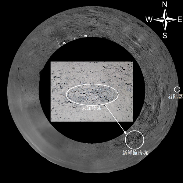 经过进一步的撞击成坑理论分析,该未知物质为撞击形成的角砾岩,可能为附近某撞击坑溅射物的撞击熔融角砾岩,可能是这个新鲜撞击坑成坑时形成的撞击玻璃凝结角砾岩。