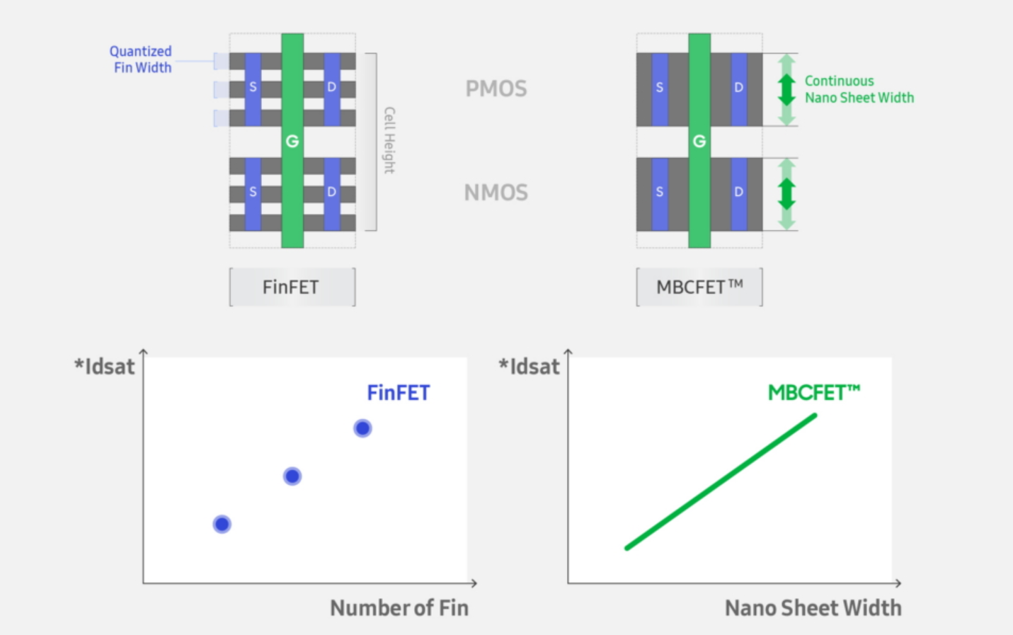 FinFET立体晶体管是Intel 22nm、台积电16nm、三星14nm工艺节点上引入的,仍在持续推进,而接下来最有希望的变革就是GAA环绕栅极结构,重新设计晶体管底层结构,而且可以做得很小(nanowire纳米线),也可以做得很宽(nanosheet纳米片)。