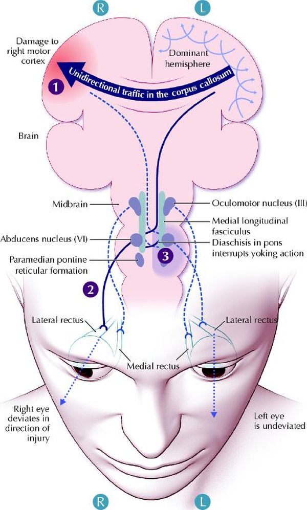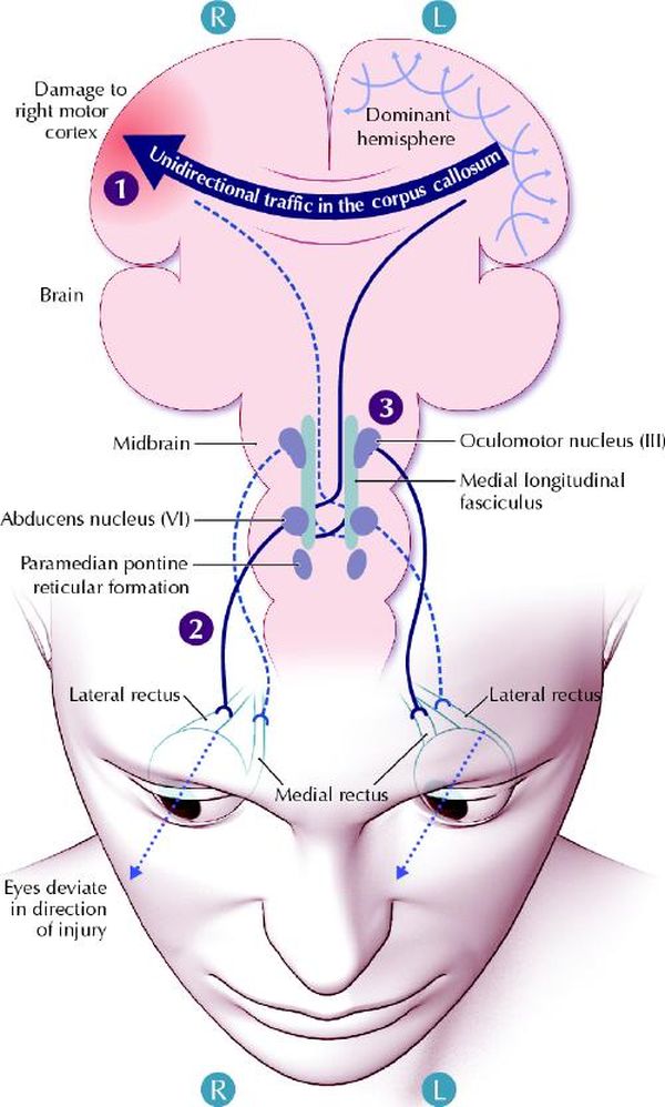 约翰斯·霍普金斯大学的眼科学教授大卫·盖顿(David Guyton)说:“首先是有了备用的眼睛,以防发生事故。其次是所谓的深度知觉,这是一种可以帮助我们捕猎的演化特征。”所谓深度知觉,亦称立体知觉或距离直觉,是指人对物体远近距离的直觉。然而,如果两只眼睛不能完美地同步运动,就会导致复视,即把一个物体看成两个物体的视功能障碍。那么,身体是如何确保我们的双眼总是一起转动的呢?大脑利用一个反馈系统来精细地调整控制眼睛的肌肉长度,从而防止复视。盖顿表示,这一系统能产生非常精确的眼球运动。根据《加拿大医学协会杂志》(Canadian Medical Association Journal)2005年的一篇评论,我们的每只眼睛都有6块肌肉控制其不同方向的运动,而且两只眼睛的每一块肌肉都必须同时被触发,才能协调一致地运动。“你可以想象一下,这真的非常令人惊奇,”盖顿说,“大脑具有一个组织非常良好的神经系统。随着时间的推移,大脑学会了应该对12块肌肉发出多少刺激,使双眼能够看向想要的注视方向。”