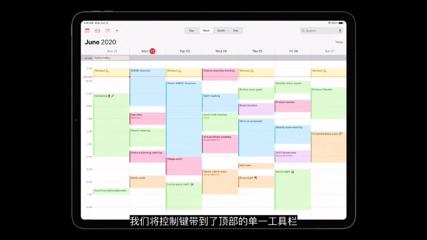 iPad上也有的应用设计也有更新,以便更好地发挥大屏幕的作用。包括日历、文件、音乐、便签和照片在内的多个应用将支持与Mac上类似的侧边栏和工具栏。苹果还重新设计了iPad上的搜索界面。