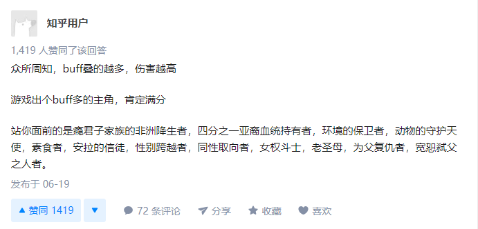 而像是游戏中的反常规设定,比如有些强于男性的女性角色会“莫名其妙”地说出一句“没有男人会更好”(女权)。这样为了表明态度而强行加入的戏份,并不会起到好的宣传效果,反而会使玩家感到不舒服。一旦游戏成为厂商们用来站队表态的工具,立场分明,无论是媒体还是玩家,对游戏的评价也就没有客观一说了。