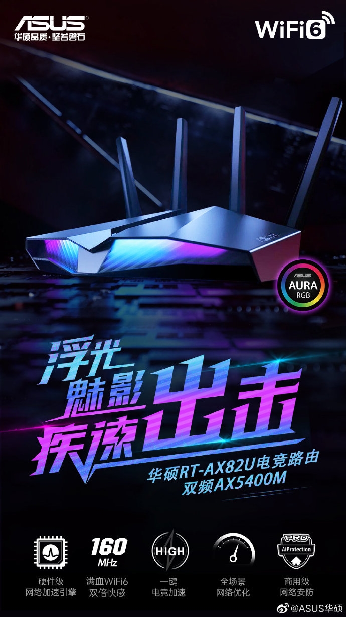 其搭载1.5GHz博通专业级处理芯片,支持1024QAM 4*4 160MHz,双频WiFi6并发速率5400M。同时,RT-AX82U支持4X4 MU-MIMO和OFDMA技术。