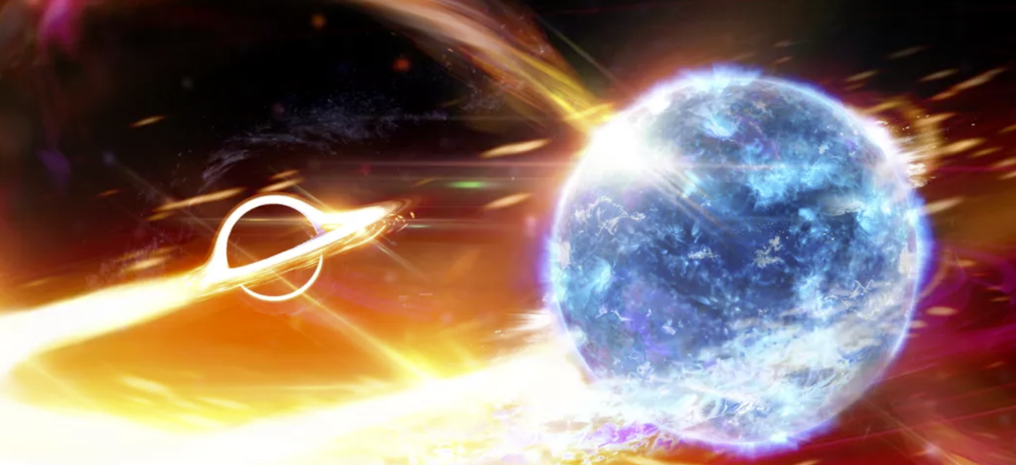 引力波穿过时空结构的巨大涟漪,2019年8月14日,一个引力波冲过了地球。美国和意大利的精密微调激光器探测到了这一波,而且它是惊人的,它暗示了一些前所未有的现象:黑洞撞上了中子星。