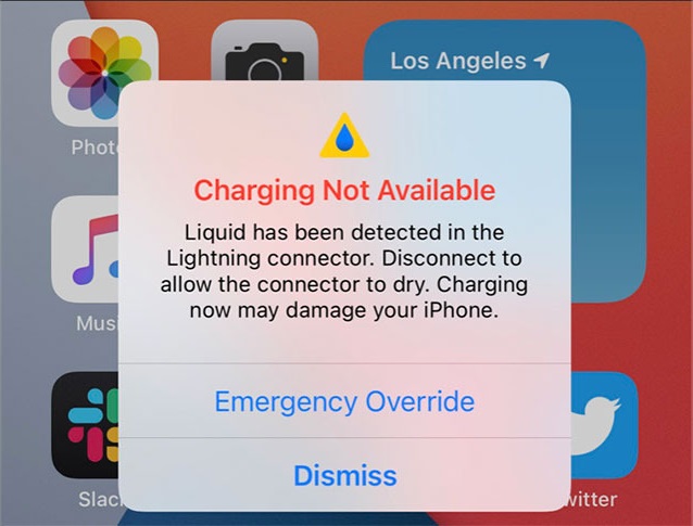 彭博社的 Mark Gurman 发现,苹果在即将推出的 iOS 14 移动操作系统中引入了进液检测机制。如果发现 Lighting 端口有进水的嫌疑,那系统将默认自动禁用充电功能。周二的时候,Mark Gurman 在某次意外后见到了这条提示,并且将截图分享到了社交网络。