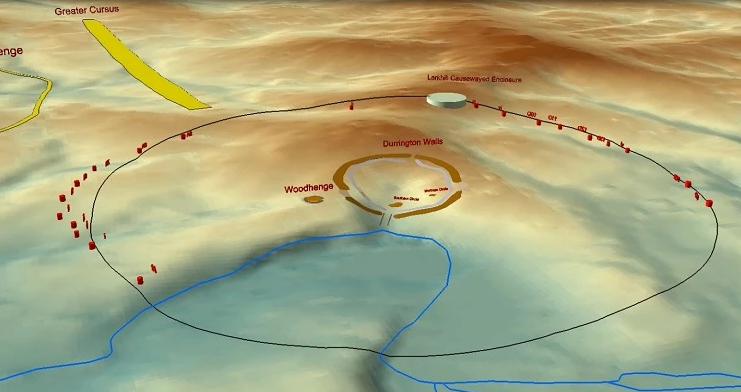 而现在,考古学家发现,该遗址的范围比之前认为的还要大。作为巨石阵隐藏景观项目的一部分,一个团队发现了一系列宽达10米(32.8英尺)、深达5米(16.4英尺)的竖井。这些竖井形成了一个2公里(1.2英里)宽的圆圈,将杜灵顿垣墙、邻近的巨木阵(Woodhenge)遗址,以及一个更古老的建筑--Larkhill Causewayed Enclosure包围起来。