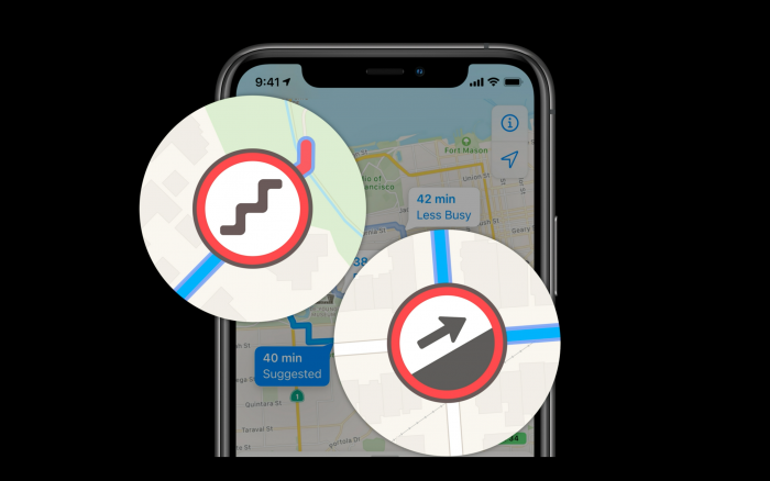 为了推行更低碳的出行方式,iOS 14 的地图应用优化了骑行和电动车出行的体验。在纽约、洛杉矶、旧金山湾区、上海、北京五座城市选择骑行出行后,用户可以在出发页面查看路线的海拔落差、是否经过拥堵路段、是否需要爬楼梯,并且在经过陡坡时还会自动提醒。
