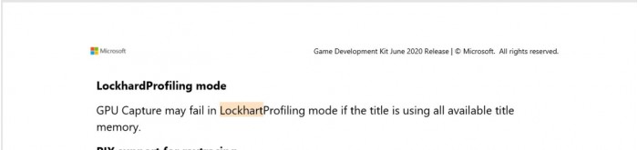 根据6月份公布的微软游戏开发机相关文档中的文字记录,此前早有传闻的开发代号“Lockhart”的正式商品名很有可能是“Xbox Series S”。推特上的一位数字安全研究员“TitleOS”最近分享了一部分相关文档,里面注明了“Lockhart”和“Anaconda”两个细分型号(Profiling mode)。