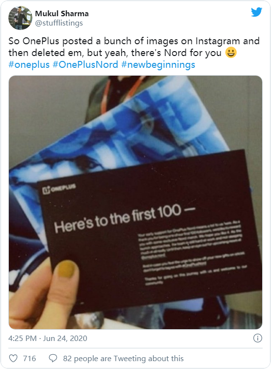 MySmartPrice 的 Mukul Sharma 将之分享到了 Twitter 上,看起来像是前 100 名用户才会看到的首发纪念卡片。