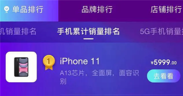 今年618期间,iPhone 11成为苹果公司的明星机型,销量一度成为京东平台的第一名,价格相比首发价有大幅下调。