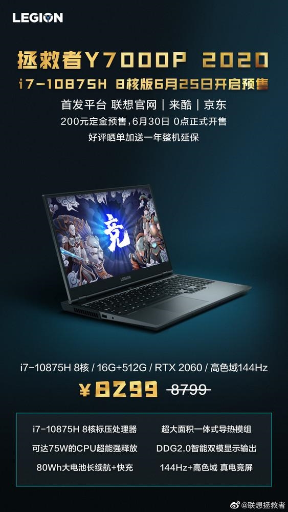 5月7日,联想正式发布了Y9000K、Y7000P、Y7000及R7000四款拯救者2020系列笔记本产品。其中,Y7000P 2020首发只有i7-10750H+16GB+1TB SSD+RTX2060显卡一个版本可选,原价9299元,首发售价8699元。