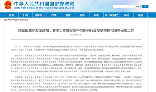 此外,通知还要求,端午节期间,各级邮政管理部门和各寄递企业总部要严格落实24小时值班制度和领导带班制度,保持应急值班电话24小时畅通。要做好突发事件应对处置准备工作,遇事及时妥善处理,并按规定报送信息。