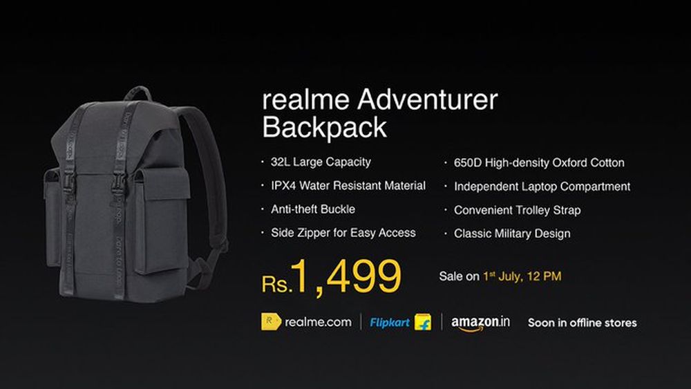 这对耳机搭载了 10 纳米驱动器,电池续航时间为 20 小时,防水等级为 IPX4。realme Buds Q 耳机内有一个鹅卵石形状的充电盒,支持30W快速有线充电,令人印象深刻。另外,realme 还在印度发布了 realme Adventurer 旅行背包,容量32L,IPX4 防水等级。