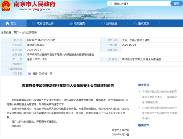 为切实增强电动自行车驾乘人员交通安全意识,降低道路交通事故损害后果,南京市将进一步加强电动自行车驾乘人员佩戴安全头盔管理。日前,我们从南京市人民政府网站获悉,7月1日起,全市行政区域内,电动自行车驾乘人员必须佩戴安全头盔。